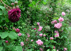 Hybrid Setigera. Mauve or purple blend, red center. Moderate, old rose, opinions vary fragrance. Medium to large, full (26-40 petals), flat, quartered bloom form. Once-blooming spring or summer. USDA zone 5b through 9b. Height: 8' to 12' (245 to 365cm). Rudolf Geschwind (1829-1910) (1884).