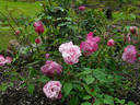 China / Bengale. Pink. Moderate fragrance. Medium, semi-double to double, in small clusters, cupped-to-flat bloom form. Blooms in flushes throughout the season. USDA zone 6a through 10b. Height of 3' to 10' (90 to 305 cm). Width of 30" to 6½' (75 to 200 cm). John Parsons (1793).