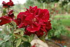 Hybrid Tea. Dark red, darker veining. Moderate fragrance. Large, full (26-40 petals), borne mostly solitary, high-centered bloom form. Blooms in flushes throughout the season. USDA zone 6b and warmer. Height of 3' to 5' 7" (90 to 170 cm). Width of 2' (60 cm). Hans Jürgen Evers (1940-2007) (1988).