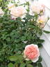 Shrub. English Rose Collection. Apricot or apricot blend. Strong fragrance. Medium, very full (41+ petals), borne mostly solitary, in small clusters, cupped-to-flat, rosette bloom form. Blooms in flushes throughout the season. USDA zone 5b through 10b. Height of 42" to 5' (105 to 150 cm). Width of 30" to 4' (75 to 120 cm). David C. H. Austin (1926-2018) (1991).