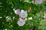 China / Bengale, Hybrid Moschata, Noisette. Light pink, ages to white . Bud crimson; flowers pinkish white, tinted lilac. Moderate, clove fragrance. Medium, full (26-40 petals), cluster-flowered, in large clusters bloom form. Blooms in flushes throughout the season. USDA zone 6b through 9b (default). Height: 4' to 6'7" (120 to 200cm). Philippe Noisette (1814).