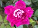 Bourbon.  Deep pink, lighter outer petals.  Strong fragrance.  Large, very full (41+ petals), borne mostly solitary, in small clusters, cupped, quartered bloom form.  Blooms in flushes throughout the season.  USDA zone 5b through 10b.