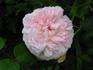 Shrub.  English Rose Collection.  Light pink.  Moderate, tea rose fragrance.  Medium, very full (41+ petals), in small clusters, cupped-to-flat, old-fashioned, quartered, rosette, ruffled bloom form.  Blooms in flushes throughout the season.  USDA zone 5b through 10b.  Height of up to 41" (up to 105 cm).  Width of up to 35" (up to 90 cm). David C. H. Austin (1926-2018) (1994).