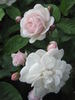 Shrub.  Parkland Series Collection.  Light pink, ages to cream .  Mild fragrance.  Medium, very full (41+ petals), cluster-flowered, in small clusters, flat, ruffled bloom form.  Blooms in flushes throughout the season.  USDA zone 3a and warmer.  Height of 30" to 4' (75 to 120 cm).  Width of 20" (50 cm). Henry H. Marshall (1976).