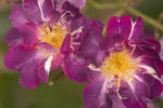Climber, Hybrid Multiflora, Polyantha, Cl., Rambler. Violet, white streaks, stripes, flecks, white center, yellow stamens. Moderate, green apple, lily of the valley fragrance. Small to medium, semi-double (9-16 petals), cluster-flowered, in large clusters, cupped-to-flat bloom form. Once-blooming spring or summer. USDA zone 4b and warmer. Height of 10' to 20' (305 to 610 cm). Width of up to 12' (up to 365 cm). J. C. Schmidt / Blumenschmidt (1909).