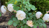 Shrub. (Series: English Rose Collection) White, light apricot shading, ages to blush . Pink buds, white blooms. Strong, anise, apricot or peach, damask, fruity, honey, raspberry fragrance. Large, very full (41+ petals), in small clusters, cupped bloom form. Blooms in flushes throughout the season. Height: up to 4' (up to 120cm). Width: up to 3' (up to 90cm). David C. H. Austin (1926-2018) (2015).