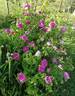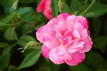 China / Bengale. Pink. Moderate fragrance. Medium, semi-double to double, in small clusters, cupped-to-flat bloom form. Blooms in flushes throughout the season. USDA zone 6a through 10b. Height of 3' to 10' (90 to 305 cm). Width of 30" to 6½' (75 to 200 cm). John Parsons (1793).