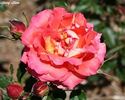 Floribunda. Orange-pink. Mild fragrance. Medium, double (17-25 petals), cluster-flowered, in large clusters bloom form. Blooms in flushes throughout the season. Height of 3' (90 cm). Warren Millington (2010).