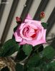 Hybrid Tea. Rose-pink. Moderate fragrance. Medium to large, very full (41+ petals), borne mostly solitary bloom form. Prolific, blooms in flushes throughout the season. Height of up to 35" (up to 90 cm). Warren Millington (2012).