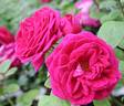 Shrub. Rose-red. Moderate fragrance. Medium, very full (41+ petals), in small clusters, old-fashioned bloom form. Prolific, continuous (perpetual) bloom throughout the season. Height of up to 4' 11" (up to 150 cm). Warren Millington (2012).