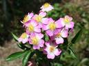 Polyantha. Deep pink, white streaks, stripes, flecks. Moderate fragrance. Small, semi-double to double, cluster-flowered, cupped-to-flat bloom form. Prolific, continuous (perpetual) bloom throughout the season. Height of up to 28" (up to 70 cm). Warren Millington (2013).