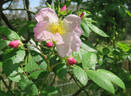 Climber, Hybrid Multiflora. Light pink, darker edges. Strong fragrance. Single (4-8 petals), in large clusters bloom form. Once-blooming spring or summer.