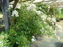 Rambler. White. Single (4-8 petals), in large clusters bloom form. Blooms in flushes throughout the season. John Hook (2018).