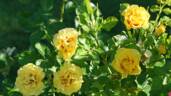 Hybrid Hulthemia persica, Shrub. Yellow, red center. Mild fragrance. Medium to large, double (17-25 petals) bloom form. Blooms in flushes throughout the season. Height: up to 39" (up to 100cm). Width: up to 39" (up to 100cm). Christopher H. Warner (2019).