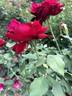 Hybrid Tea. Dark red, darker outer petals. Few and small folioles on sepals. horizontal prickles. Strong, damask fragrance. Double (17-25 petals) bloom form. Height of up to 4' (up to 120 cm).