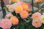 Floribunda.  Orange blend, yellow undertones.  Moderate fragrance.  Medium, very full (41+ petals), in small clusters, cupped bloom form.  Blooms in flushes throughout the season.  USDA zone 5b through 10b.