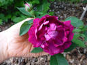 I have been trying to ID this rose for years, found the entry in Phillips & Rix's "The Quest for the Rose". Interestingly it is one of several suckering wild gallica-like roses I have found near old farmhouses in varied climates in South Africa. Anyone researched/documented these 'new world gallicas' obviously carried along by wagon in the late 19th century?? The 2nd photo is of another rose from over 1000miles away. I have found but not collected pale pink specimens as well. Looking at the other photos, the typically gallica central button is missing in all my roses, the effect being more like a centifolia, but the general habit is more typically gallica than anything else I know. Comments please?