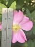 Measured flat diameter in inches. Impressive for a single near species rose. All blooms on my bush this size. Same bloom as previous photo. Spring 2025 garden sample Calgary Aberta.