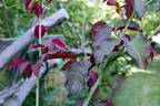 "Not Souvenir d'un Ami". New leaves are purple-red and the colour remains on the underside of the older leaves for quite a while. Note the characteristic upturning around the mid-rib and undulating edges. Rockingham Beach, Western Australia.
